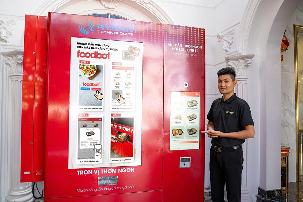 FoodBot là một sản phẩm được nghiên cứu và phát triển bởi RYNAN Technologies Vietnam, công ty công nghệ đến từ Trà Vinh. Không giống như một hệ thống nấu ăn thông thường, FoodBot hoạt động như một máy bán hàng tự động thông minh, kết hợp giữa tay robot và lò hâm nóng thức ăn để phục vụ các suất ăn nhanh chỉ trong 2 phút.